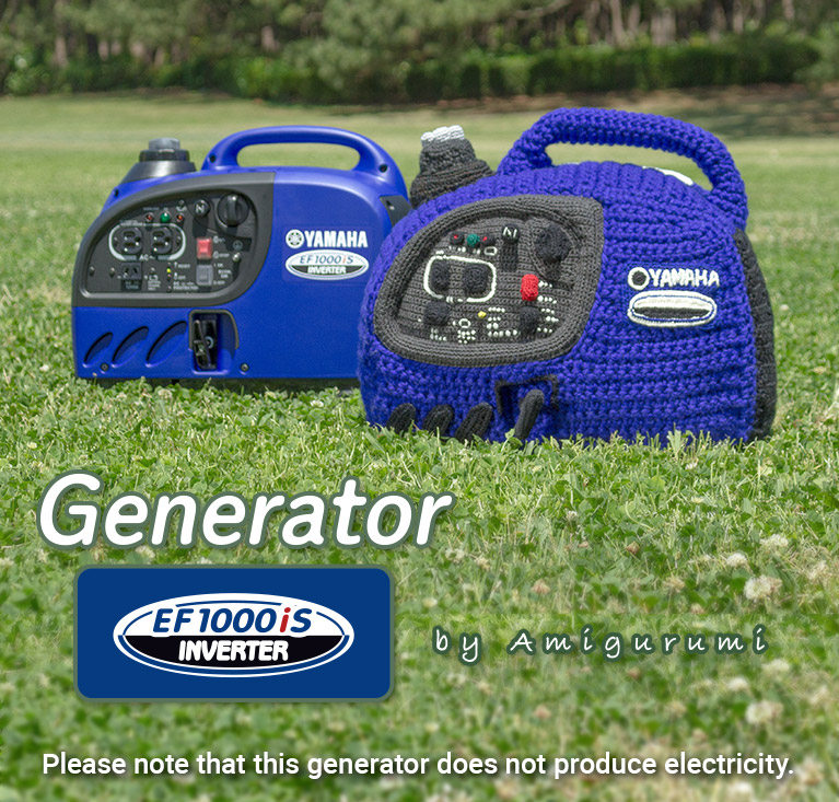 Generators produce electricity by rotating a power-generating body with an engine. The EF1000iS has a device called an inverter and therefore its strength is that is it quieter and lighter than a conventional generator. We have reproduced this almost life-size popular model used for camping, DIY and an emergency power source with amigurumi.